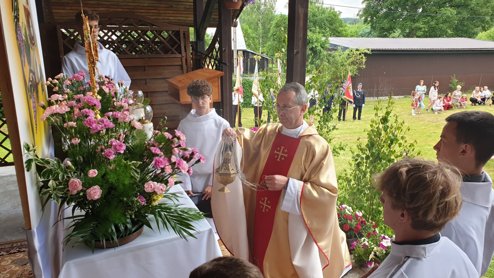 30 maja 2024 r. obchodziliśmy Uroczystość Ciała i Krwi Chrystusa (Boże Ciało). Tego roku pogoda nam bardzo sprzyjała. Główna Msza św. została odprawiona o godz. 10:00 celebrowana przez ks. Proboszcza Bogusława Pociaska SCJ, na której kazanie wygłosił ks. Zdzisław Huber SCJ w czasie którego akcent położył na dotrzymywaniu przyrzeczeń czy danego słowa. Bóg swoją własną zapowiedź odkupienia realizuje poprzez ustanowienia Eucharystii zostawiając nam swoje Ciało i swoją Krew będące dostępne dla nas do końca czasów. Czy i my potrafimy dotrzymać słowa danego Bogu? Czy słowa wypowiedziane przy starym przymierzu («Wszystkie słowa, jakie powiedział Pan, wypełnimy», «Wszystko, co powiedział Pan, uczynimy i będziemy posłuszni») będą i naszą odpowiedzią? Słowo i zapewnienie Boga stało się Ciałem. Niech i nasze przyrzeczenia przybiorą realną postać.