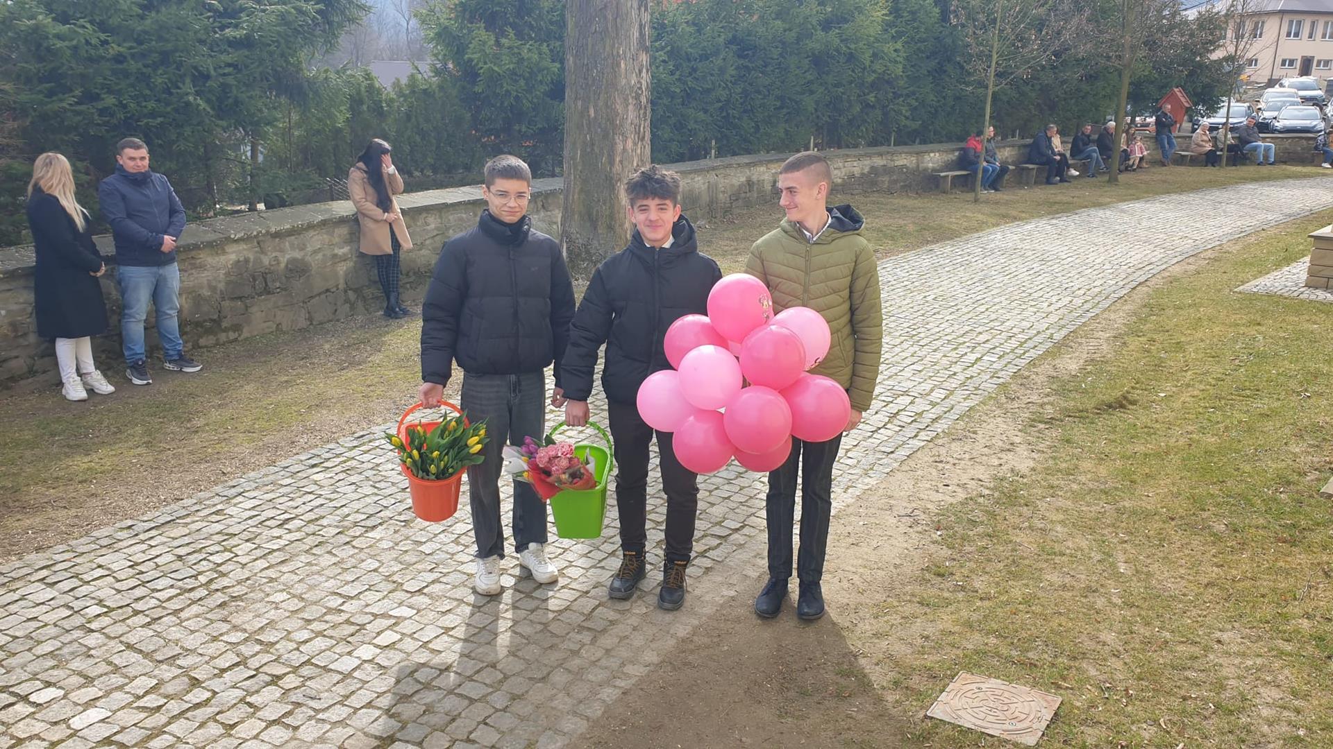 W niedzielę 8 marca 2026 ministranci przed południem po mszach świętych rozprowadzali kwiaty na Dzień Kobiet.